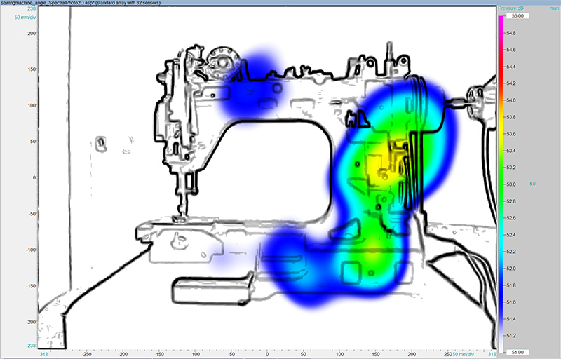 The Acoustic Camera can find faults resulting in variations in the soundscape, without depending on the disposition of quality assurance (QA) staff. Two acoustic images can be placed side by side in NoiseImage to perform a simple comparison of nominal and actual values. The same value range is applied to both images with the click of a mouse button. Any variations become obvious and the visual presentation also reveals where exactly the fault is located.